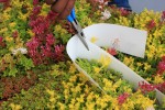 LiveRoof modules have inserts which raise the soil above the edge of the modules during cultivation. Once they are nested together on the rooftop, these “Soil Elevators” are removed for a meadow-like, continuous layer of growing media and plants.