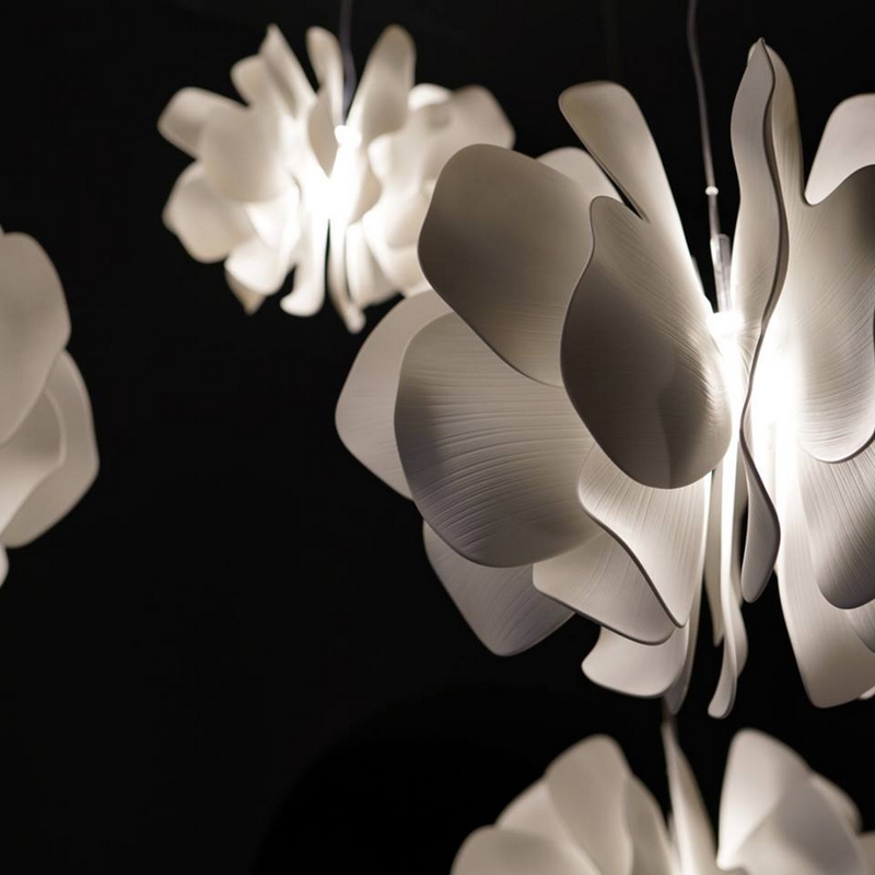 Coinciding with Euroluce 2019, Lladró announced the launch of Nightbloom in collaboration with the celebrated Dutch design studio Marcel Wanders.This collection of white porcelain chandeliers is inspired by the way the petals of a flower delicately dance in the wind and breeze. Sculpted by hand with a sense of natural randomness, each 3D-relief part of the bouquet lamp is a unique and unrepeatable handcrafted creation.