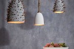 Evoking primitive artwork reimagined for a modern aesthetic, the Celestial collection combines earthenware with hand-painted, textural details to create a uniquely radiant design statement. The collection includes footed bowls, mirrors, and hanging lamps with antiqued brass hardware.