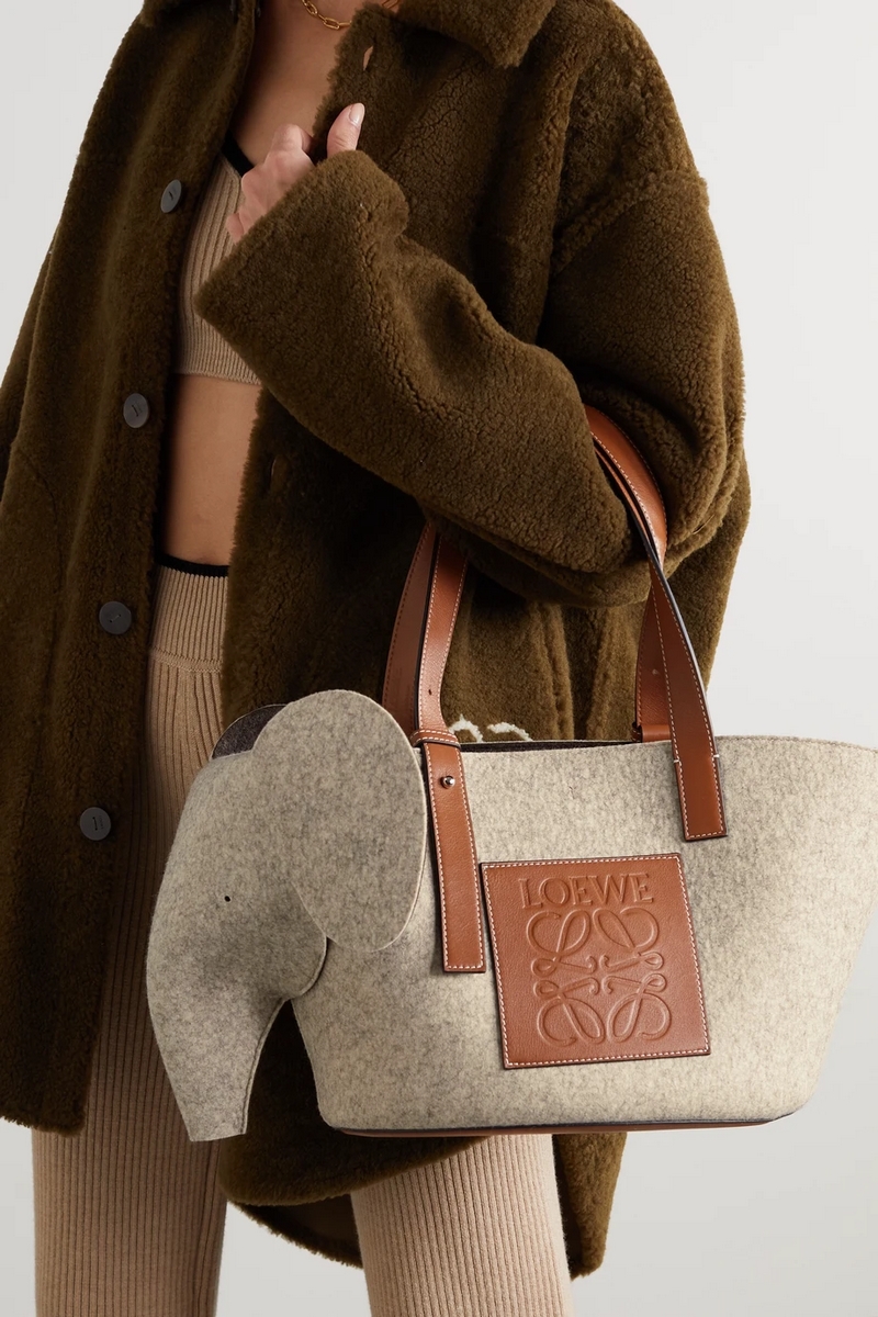 Alongside the modern classics, Creative Director Jonathan Anderson likes to incorporate a few playful idiosyncrasies into Loewe’s bags, too. The ‘Elephant’ tote is crafted from soft felt that’s shaped to resemble its namesake. It’s reinforced with leather at the base and has matching top handles and an ‘Anagram’- embossed logo patch.