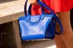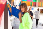 The 31-year-old English television presenter, model and contributing editor at British Vogue posed for photographer Max Vadukul showcasing Longchamp’s miniature version of Le Pliage Héritage bag in electric blue or coral.