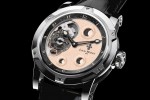 The unique timepiece sports a gold-plated dial, for which the firm has performed another first in terms of decoration: its face is first gilded – and then hand- punched to form lunar ‘craters’. And to complete the metaphor, Ateliers Louis Moinet has filled these craters with genuine fragments of lunar meteorites.