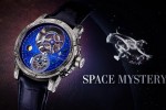 The Metropolis Only Watch watch is not the first Louis Moinet horological creation to feature extraterrestrial fragments. Louis Moinet Space Mystery is the world’s first “satellite tourbillon”: the cage is balanced by means of a planet that rotates around it. Space Mystery also includes authentic fragments of a mysterious meteorite from the far-flung regions of space that holds traces of amino acids – possibly one of the first forms of life in the universe. This unique Fine Watchmaking composition is showcased on a dial in Magic Blue – a colour whose exact composition remains one of Louis Moinet’s closely-guarded secrets.