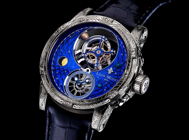 The Metropolis Only Watch watch is not the first Louis Moinet horological creation to feature extraterrestrial fragments. Louis Moinet Space Mystery is the world’s first “satellite tourbillon”: the cage is balanced by means of a planet that rotates around it. Space Mystery also includes authentic fragments of a mysterious meteorite from the far-flung regions of space that holds traces of amino acids – possibly one of the first forms of life in the universe. This unique Fine Watchmaking composition is showcased on a dial in Magic Blue – a colour whose exact composition remains one of Louis Moinet’s closely-guarded secrets.