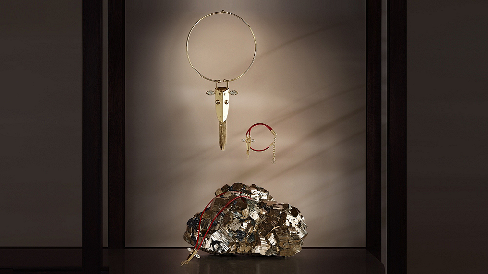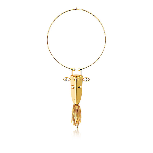 Shimmery, dangling metallic chains and artfully placed Swarovski crystals form the the Vuittonite Crew Necklace. The quintessential playful accessory is inspired by the Chinese New Year.