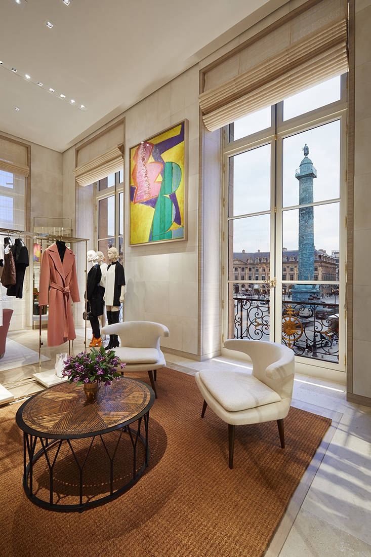 “Despite the store’s grand Place Vendôme location (one which also boasts other Marino-commissioned flagships by Chanel and Dior), the intention of the space is not to overwhelm, but welcome. ‘The whole concept is that we call it the Louis Vuitton Maison. “The House of Vuitton” in this case is very fitting within the classic Parisian townhouses. This is intended to make the visitors feel at home,’ Marino says. ‘On entering one should feel excited and expectant, and on leaving, happy and uplifted.’