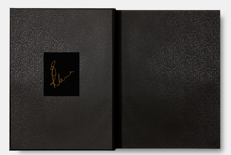 Love, Rihanna book is a large-format limited edition, hand-sewn and bound in bespoke padded Japanese-designed fabric with a pearlescent finish, with an embedded, matte black, laser-cut steel logo, designed by Barnbrook studio. The endpapers feature a custom design by The Haas Brothers in spot gloss on a rich black paper stock.