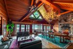 Other property features include a waterfront great room with 20-ft ceilings, exposed wood beams and hand-laid stone fireplace, in addition to a private elevator, multiple offices, prep and commercial-grade kitchens, and an indoor “lap pool.” Grounds include a private boardwalk that gently winds through the property’s forested areas – ideal for nature walks, photography or simply a breath of fresh air.