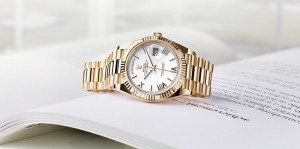 Rolex Day-Date 40 in 18ct yellow gold, with white dial, bevelled deconstructed Roman numerals and President bracelet
