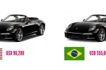– Import taxes on luxury goods in Brazil are among the highest. A Porsche Carrera Convertible worth USD $96,200 in the US will be sold USD $355,000 in Brazil.