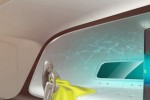 Floor, wall and ceiling flow into each other. Featuring numerous innovative details, the furniture with its sensuous clarity of design merges seamlessly with the cabin interior. The cabin windows are concealed by so-called black panels, which, inspired by the screen design in the Mercedes-Benz S-Class, appear to float in front of the window like a light corona. Innovative Mercedes-Benz Magic Sky technology allows the panels to be dimmed electrically from black to transparent. Displays and touch screens for entertainment and information can easily be integrated into the black panels.