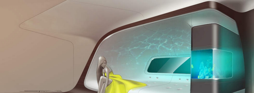 The traditional separation of ceiling, wall and floor in the future VIP cabin for short- and medium-haul aircraft will be replaced with dynamic architecture. The Mercedes-Benz Style x Lufthansa Technik proposal presented at EBACE 2015 in Geneva is just in the concept phase. But the entirely innovative, luxurious and integrated cabin concept could very well soon become a reality. Mercedes-Benz VIP aircraft cabins is centered around organic and it flows like a spiral.