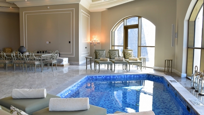 The suite’s three bedrooms include a master bedroom that is connected to a generously sized bathroom with an exquisite free-standing bathtub in the centre and adjoining separate male and female walk-in dressing rooms. The additional two bedrooms – one king bed and a pair of twin beds – feature their own double vanity bathrooms. The suite’s pièce de résistance is a majestic in-room spiral staircase that leads into the central dome of the hotel, where a rooftop plunge pool and generously sized majlis reveal panoramic views of the landscaped gardens and surrounds.