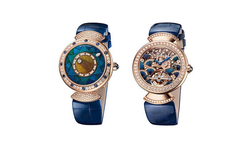 Master of Coloured Gemstones, Bvlgari celebrates the beauty of colour with the launch of Divas’ Dream Peacock Dischi and Divas’ Dream Peacock Tourbillon Lumière, two limited editions blending prestigious decorative techniques and jewellery-making know-how with rare Swiss watchmaking expertise.