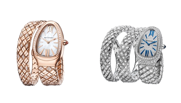 The captivating Bvlgari snake sheds its skin to introduce the new Serpenti Spiga watches, iconic jewellery-timepieces sensually coiling the wrist. Sparkling in gold and diamonds, and featuring an intricate matelassé pattern, the pieces represent Bvlgari’s unique ability to redraw the boundaries of creativity, refinement and expertise.