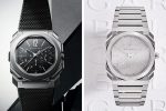 A sportier reimagination of the original monochrome aesthetic, the new Octo Finissimo Chronograph GMT Titanium introduces a new black opaline dial and a textured rubber strap, completed by an ultra-thin titanium case for lightweight strength.