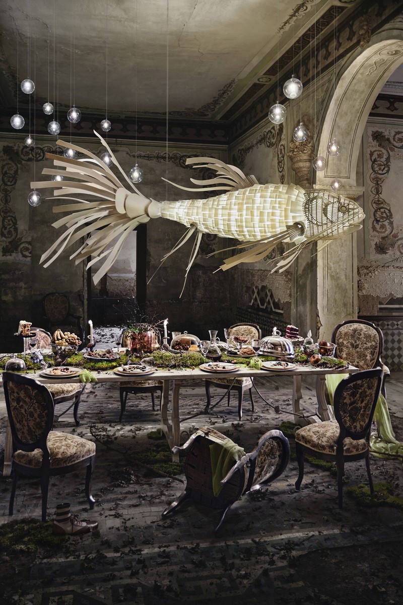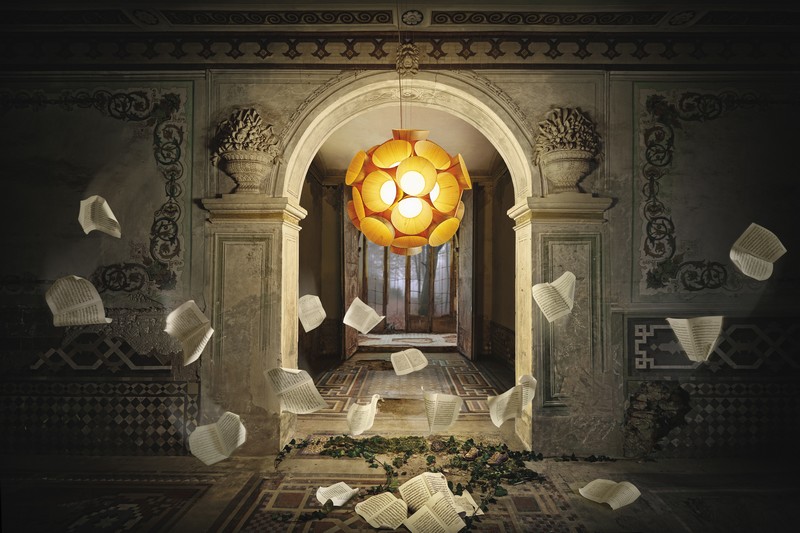 In a beautiful and bizarre series of images, we find each giant light in a dreamlike state, placed in the rooms of what might have been an old palace, a palazzo or alcazar. A one-time magnificent residence, now dilapidated and in ruin, we imagine it to have been a home to members of high society or royalty. Across a series of vivid vignettes, we find LZF’s Life Size lights perfectly composed among the detritus and our imagination is given the freedom to frame each narrative.