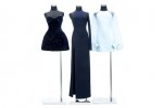Comprising of three dresses and a hooded fur coat, each piece takes a name inspired by generations of international jet-set girls. Choose between Noor, the light blue chiffon dress; Camilla, the midnight blue velvet bustier dress; Jerry, the midnight blue one shoulder gown; and Bianca, the midnight blue hooded fur jacket.
