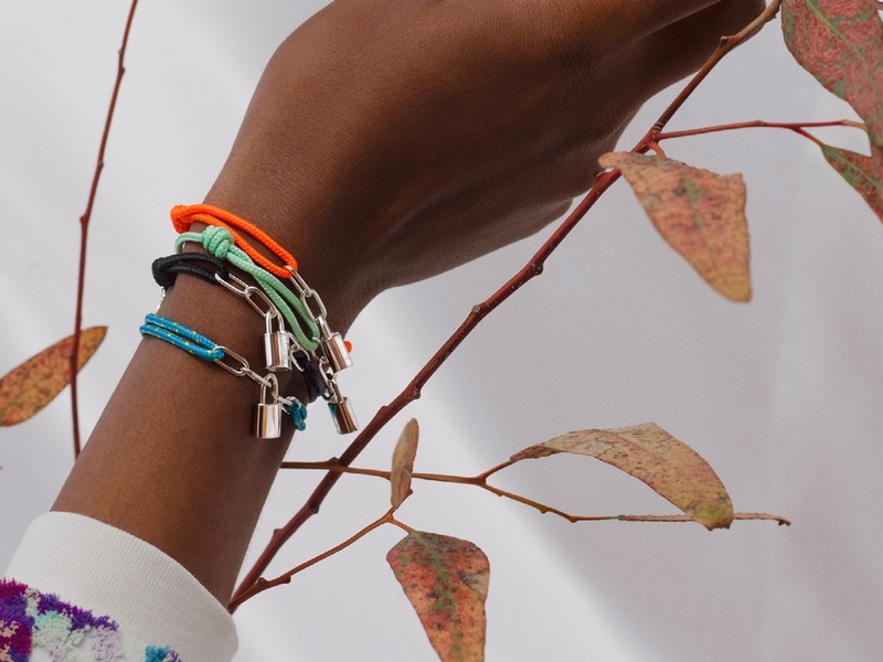 The 2020 edition of Silver Lockit bracelets by Virgil Abloh is inspired by the designer’s Spring-Summer 2020 men’s wear collection, with four colorways: black, orange, celadon green and a blue with hints of yellow. Fitted with a Louis Vuitton charm and engraved padlock, the colorful cords are connected by Virgil Abloh’s signature chain, available for the first time in sterling silver. The Silver Lockit bracelet is inspired by the famous tumbler lock invented by Georges Vuitton in 1890 to protect customers’ most precious belongings.