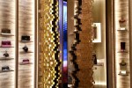 famous ‘Baguette’ bags have a wall covered in 40,000 bronze spikes, while the fur room features metallic and black Japanese