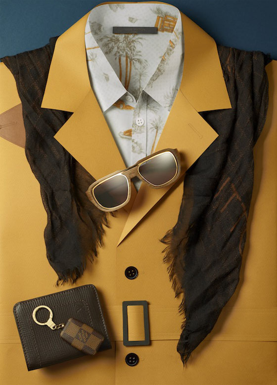 Our favorites are: Navy Yellow Manuscript Pocket Square, Nomade Khahi Multiple Wallet, Soft Briefcase in Tabac Nomade Leather, Digit Key Holder, Damier Ebene iPhone Case, Ellipse Belt in Calf Leather Moka, 6-Key Holder in Damier Graphite, Chaine XL Key Holder, Explorer Compass Key Holder, and Harold Brown Sunglasses.