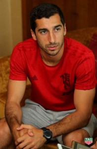 Manchester United Midfielder Henrikh Mkhitaryan with his TAG Heuer Aquaracer Calibre 5 Black