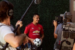 Manchester United forward, Alexis Sanchez, smiles down the lens during a Chivas film shoot in July in Los Angeles, United States