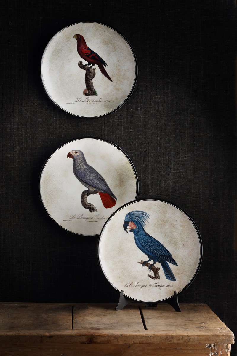 The tradition continues in the proposal of the Perroquets wall plate collection, made by recovering a craft technique of printing using film-painted china and silk looms without any contribution of digital technology.