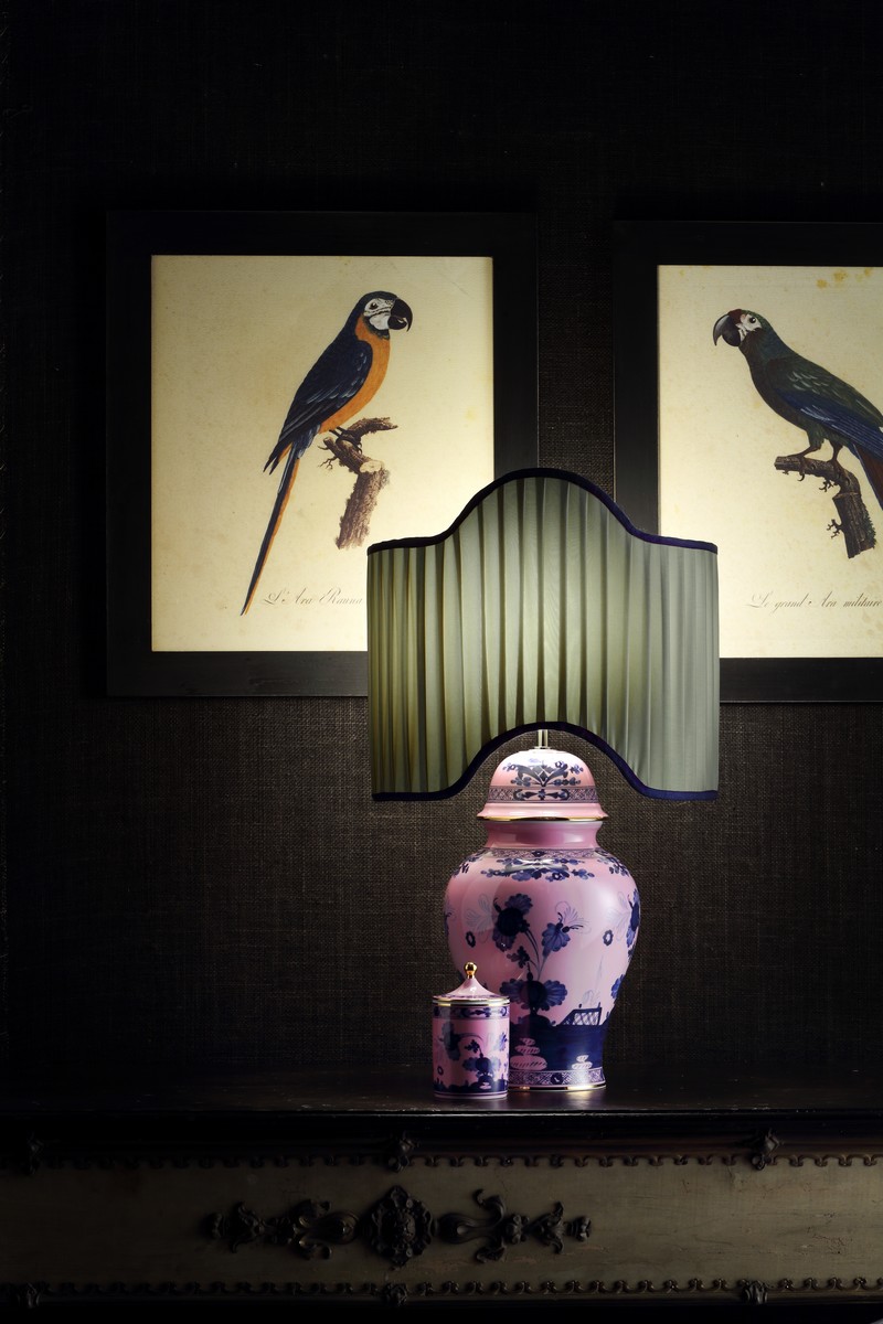 The Richard Ginori living style opens the door to the Lumieres collection, porcelain lamps with floral decorations from the historical traits of the Manufacture and the geometric designs of Italian architect, industrial designer and artist Gio Ponti.