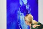 In “Blue Portrait”, an empty, undrawn face of another confronts us, forcing us to create our own image. A second look reveals that the blue of the figure’s hair splits and fragments, appearing on competing planes. As with any social interaction, closer scrutiny leads to an ever-multiplying chain of reflections. The technology used to create this effect speaks to Wertenbroek’s adherence to pure, precise elements of design.