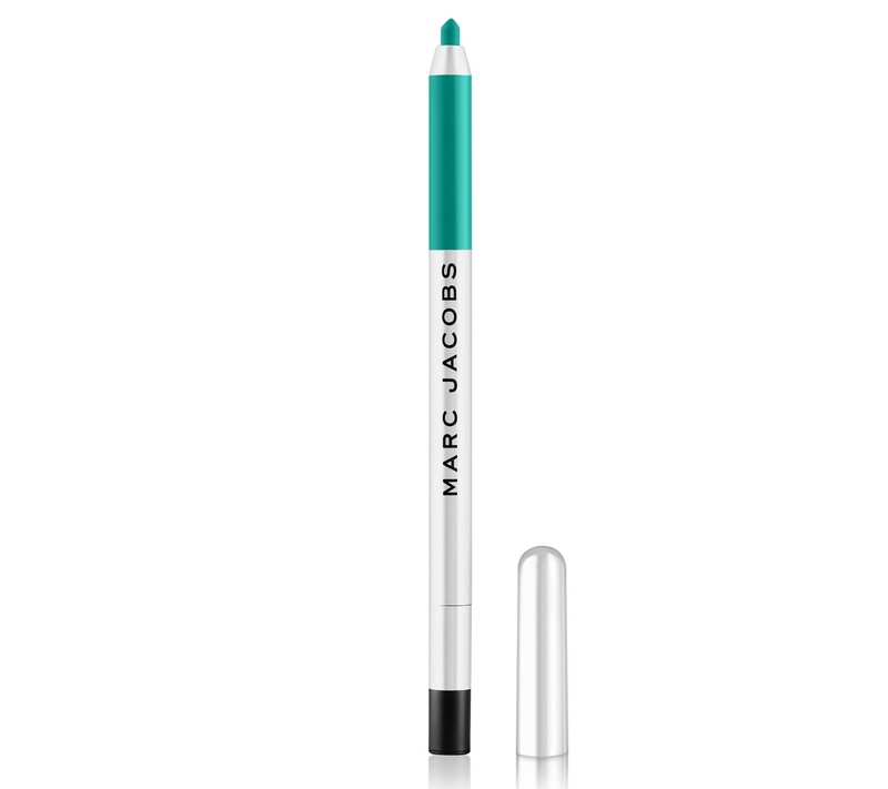 In the first image of the new marc jacobs beauty spring 2017 collection, Kaia Gerber wears the new highliner matte gel eye crayon eyeliner in whirl(pool) and o!mega lash volumizing mascara in peacock, which are a part of the new Spring 2017 collection launching in January 2017. In the second image, Kaia wears the new le marc liquid lip crème in slow burn.
