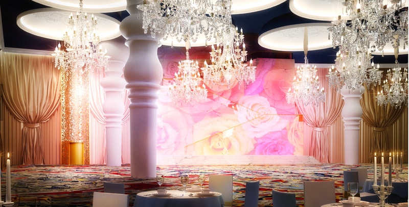 The largest in the region, the ballroom is an elegant, transformable space that can be adapted to suit every occasion, from lavish weddings and award ceremonies to larger functions and presentations. Brides can enjoy the most glamourous of entrances with the use of an incredible 24 carat gold sculpted caged elevator which links the secret bridal suite directly to the ballroom.