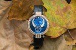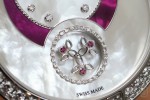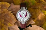 Another ultra-luxurious release from Harry Winston is the Premier Diamond Second ladies watch. In contrast to the deep white mother-of-pearl background, a burgundy mother-of-pearl crescent embraces the ex-centered hours and minutes counter of the exquisite watch from Harry Winston’s ateliers. Three white gold hands, adorned with three pink sapphires, dance along the counter to the beat of the seconds, bringing a beautiful display of motion to the dial.