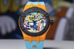 Enlivened with a plethora of eye-popping shades, the 40mm model features a flat sapphire crystal, augmenting readability, and a quartz movement. The dial is adorned with the Thai artist’s 3-eyed character, ‘LOOOK’, an alien who came from nowhere to live among us. The bezel and crown are dressed in black, while the case body is executed in a vibrant shade of orange. Finally, a funky light blue rubber strap completes the ensemble. Owners of the watch can modify its appearance courtesy of the Easy Strap Exchange system, swapping the strap for an alternative, without the need for tools.