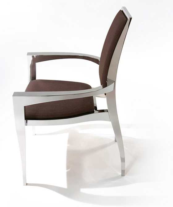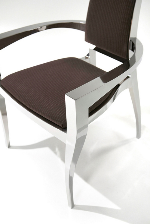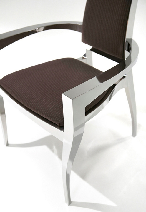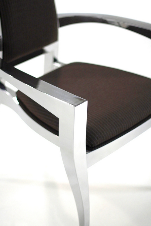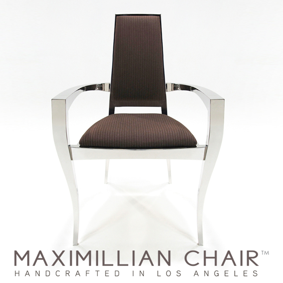 The limited edition Maximillian Chair handcrafted in Los Angeles is the passion project of designer Armen Sevada for the last seven years. The Maximillian Chair is constructed of 100% polished mirror-finish stainless steel and is available in range of luxury fabrics that enhance the chair’s beauty and elegance.