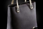 The luxurious travel bag features a large zippered inside compartment and two outside compartments as well as a detachable and adjustable padded shoulder strap.