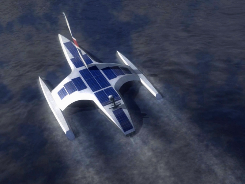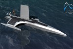 CGI Visualisation of the Mayflower Autonomous Ship cruising at sea, completely unmanned 2019