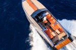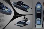 The largest of all three Mazu’s models to be shown in Cannes, the 42 walk-around boat has an overall length of 11.99 meters and a maximum beam of 3.7 meters. The center console leaves room for two ample lateral walk-arounds. The yacht has a freeboard that is high enough to allow safety movement on deck even while at sea in combination with sportive profile with and military twist overtones.