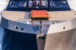 To maximize guests comfort, the boat has two galleys with Gaggenau appliances both inside and outside, equipped with cooker, grill, microwave and oven, along with sink, fridge, deep freezer and ample storage for crockery and provisions. A bimini, aft deck shower and swim platform with a retractable swim ladder on the transom, provide added cruising benefits.