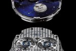 The phase of the moon is displayed through a signature Korona-shaped aperture, while the mystery winding rotor takes the form of a steel and 22k gold disc with laser- pierced stars forming constellations visible in the northern sky.