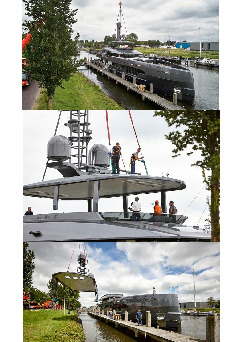 As the owner appreciates light and brightness on board, a significant change was specifying drop windows in the sky lounge and shorter aft deck overhangs for better natural illumination below. These changes were successful and the boat is very light, bright and airy on board.