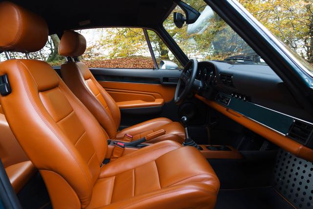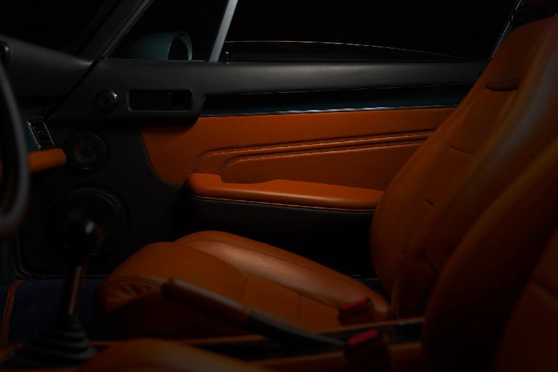 BEL001 features ‘touring’ front seats, based on Porsche Recaro frames and mechanisms, but modified with updated and custom shaped foams, elevating comfort and support in equal measure. The seats are then impeccably trimmed in soft tan leather. The rest of the interior is trimmed in matching tan leather, with black accents, all complemented by body colour matched elements on the dash, doors and rear quarter panels.