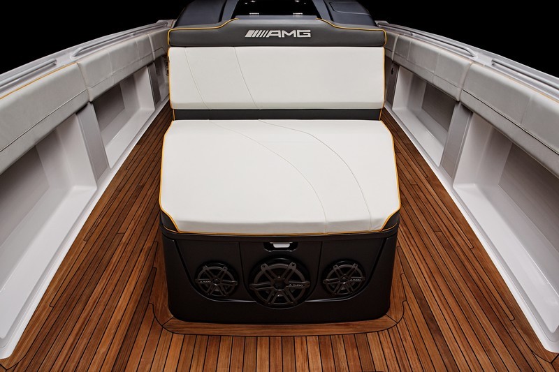 Cigarette Racing Team has partnered with Mercedes-Benz to design Cigarette’s fastest open performance center console powerboat yet. Mercedes-AMG GT3 inspired the creation of 41’ SD GT3 boat with design, fittings and cockpit featuring signature AMG elements. The two legendary brands united once again at the Miami International Boat Show (from February 11-15 at the Miami Marine Stadium Park & Basin).