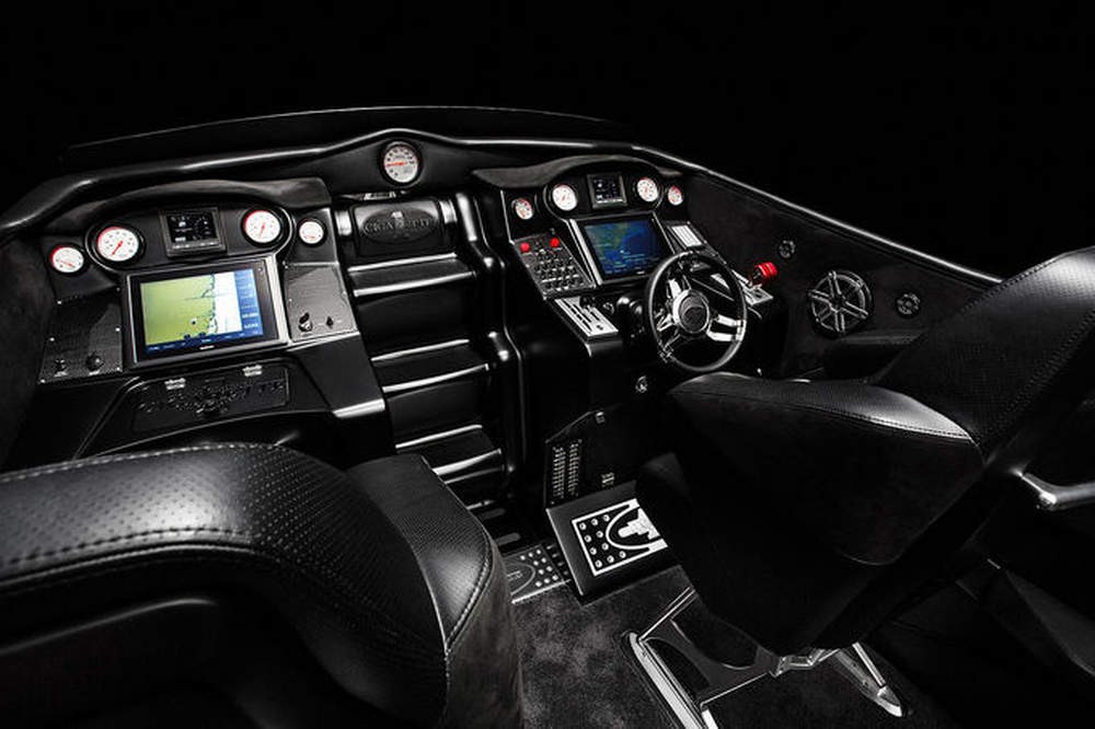 The crafted interior is black with black alcantara accents, and uses carbon fiber dash panels inside the boat with silver face gauges. User interface technology is also maximized with Bluetooth, computerized controls, four high-definition displays, and the next generation integration of Garmin and Cigarette navigation and audio.The price of this one-of-a-kind boat from Cigarette Racing Team is USD $1.5 million.