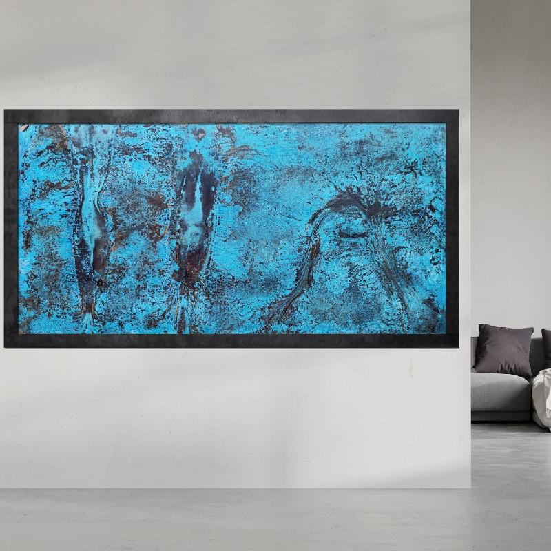 Even when other colors dominate in the copper that oxidizes, depending on the slab, we can refer to trees that with their chiseled barks seem to stand out from the backgrounds as in the paintings, and the protagonists are the colors ranging from the blues of the maritime shades and therefore tending to Cerulean up to Steel Blue and Denim.