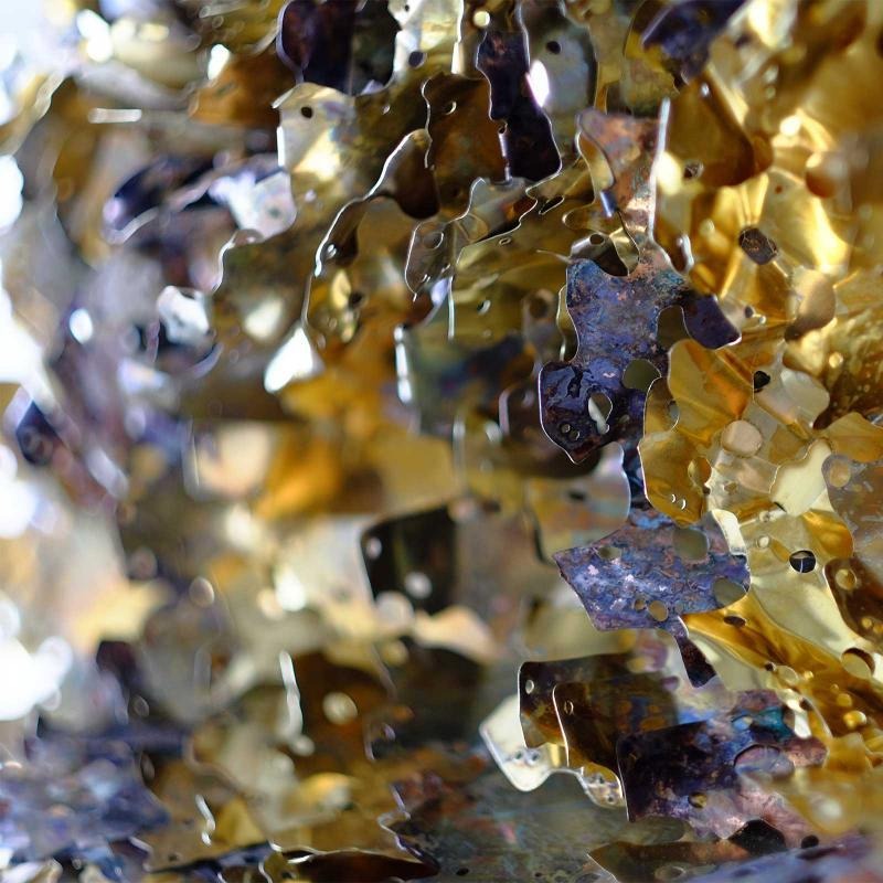 Neither animals nor plants, they manifest a third nature. Metallic surfaces bubbling with textures testify of interactions among materials; a diversity of tissues reminiscent of a brimming coral reef, faraway lunar landscapes, or delicate lace-like textures formed over centuries.