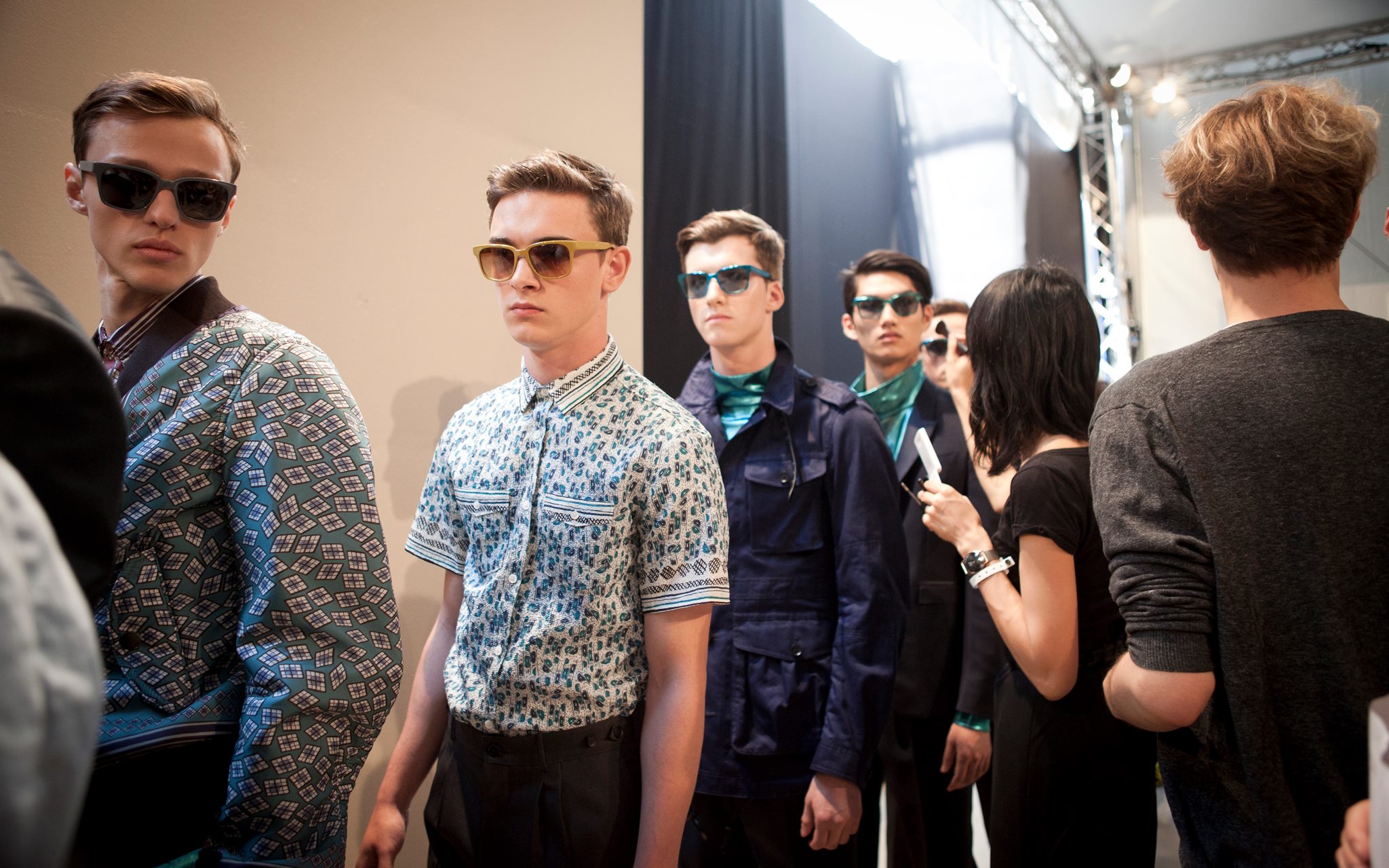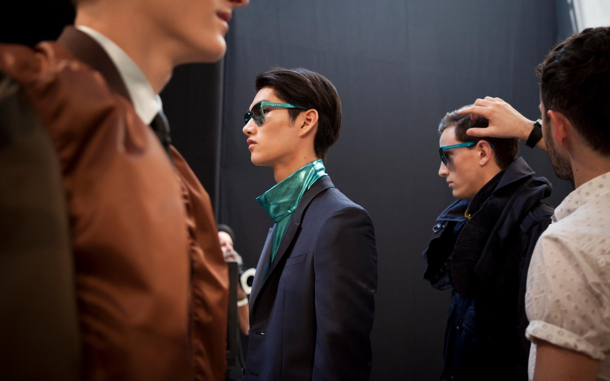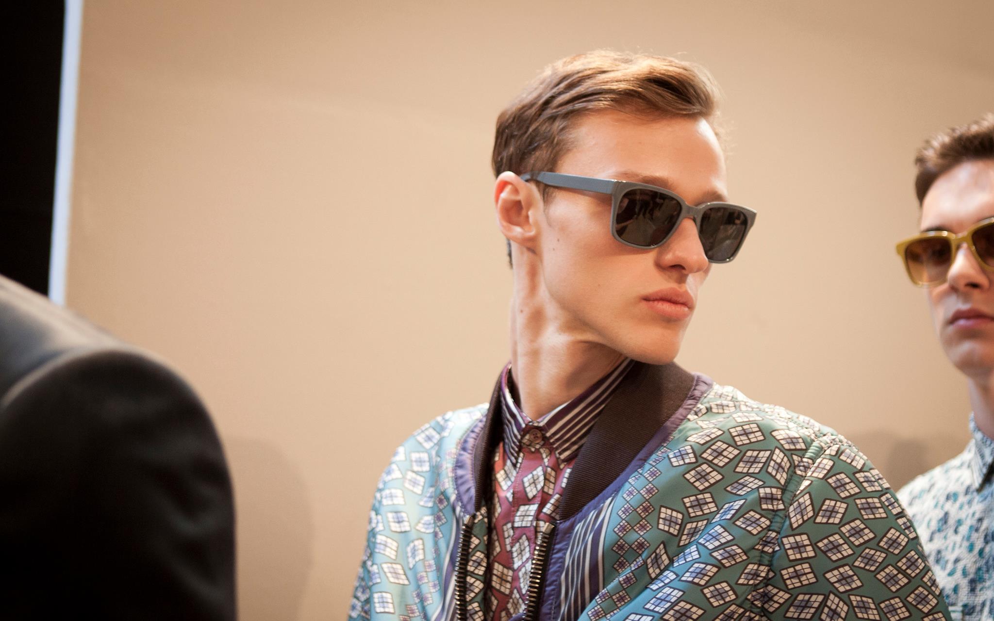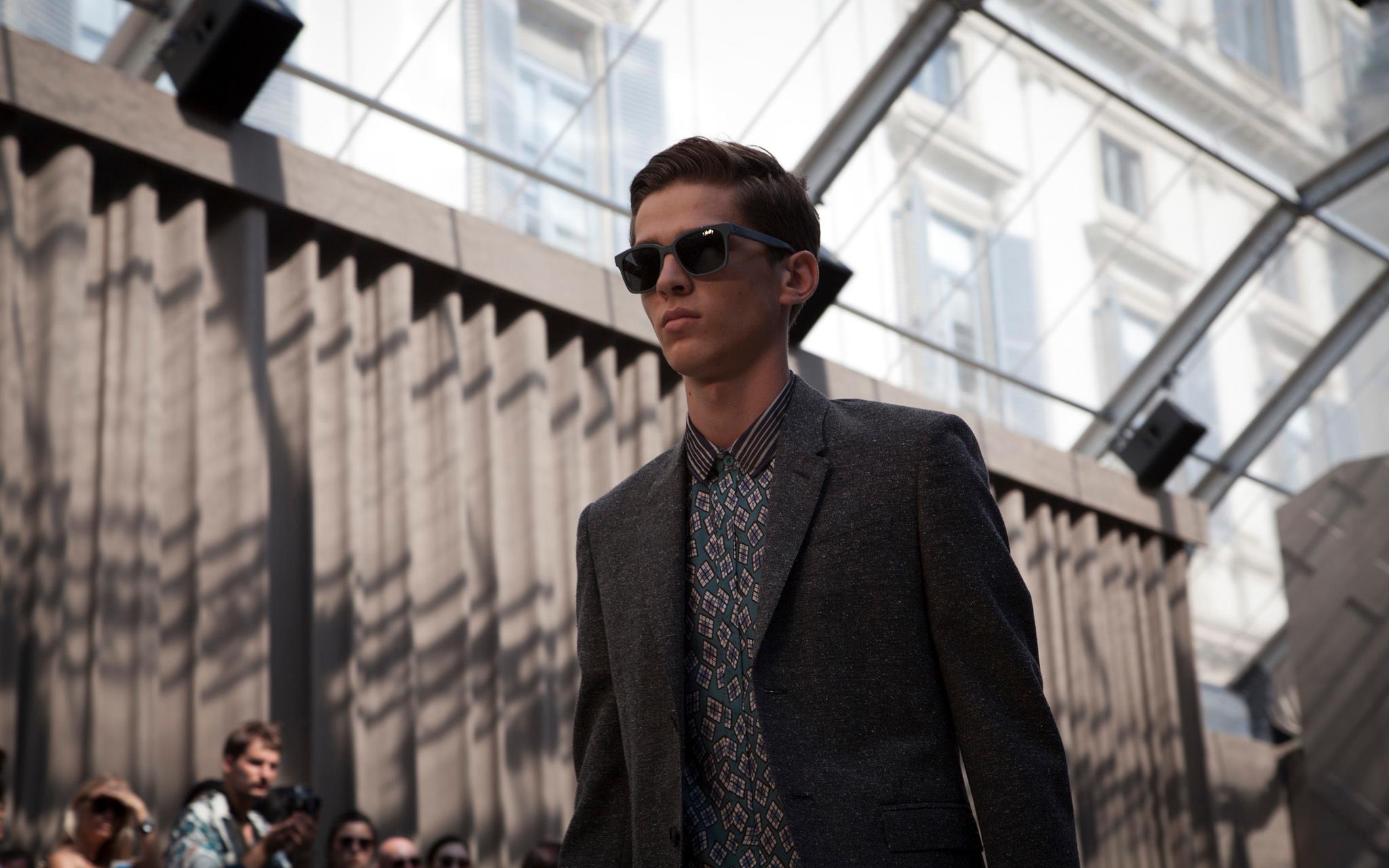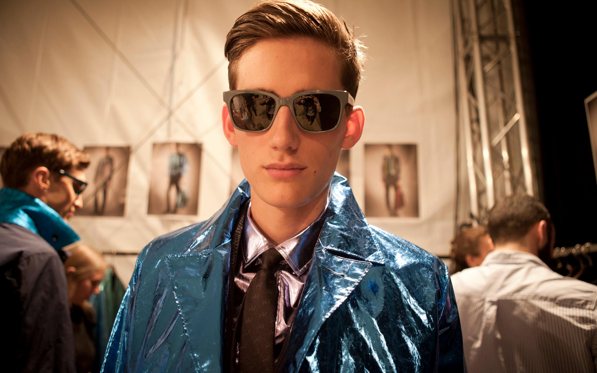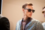 Burberry tailoring, plus vibrant geometric prints, metallic petrol blue iPad cases, day glow shirts and splash sunglasses will compose Spring Summer 2013 menswear wardrobe. Christopher Bailey adds a touch of metallic finish and a adds a little bit of glitz in menswear ensemble.