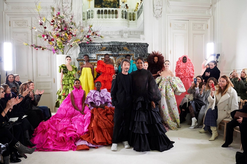 Naomi Campbell, Kaia Gerber, Akiima Nyarach Abouch, Ayak Veronica, Mariacarla Boscono, Ugbad Abdi, Natalia Vodianova and Adut Aketch were some of the models dressed with ruffles, frills, fringes, volumes, and flowers. This repertoire of classic Haute Couture is transformed into a realm between fantasy and reality.