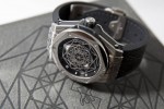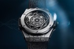 The brand-new, totally redesigned 45mm Big Bang in titanium, which sees its lines beveled, features a signature Sang Bleu geometric graphic – evoking the harmonious and proportional relationships derived from Leonard de Vinci’s Vitruvian Man. The titanium bezel of the Big Bang sees its