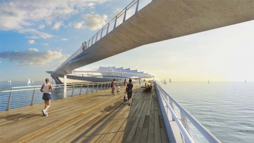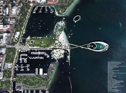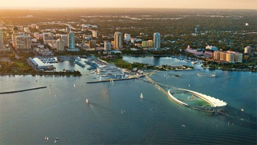 Called “The Lens,” the gigantic project will frame the city through its structure and create a connection between downtown St. Petersburg and its waterfront. It will include a new tidal reef, a civic green, raised walking paths, an amphitheater, a water park and other leisure activities.